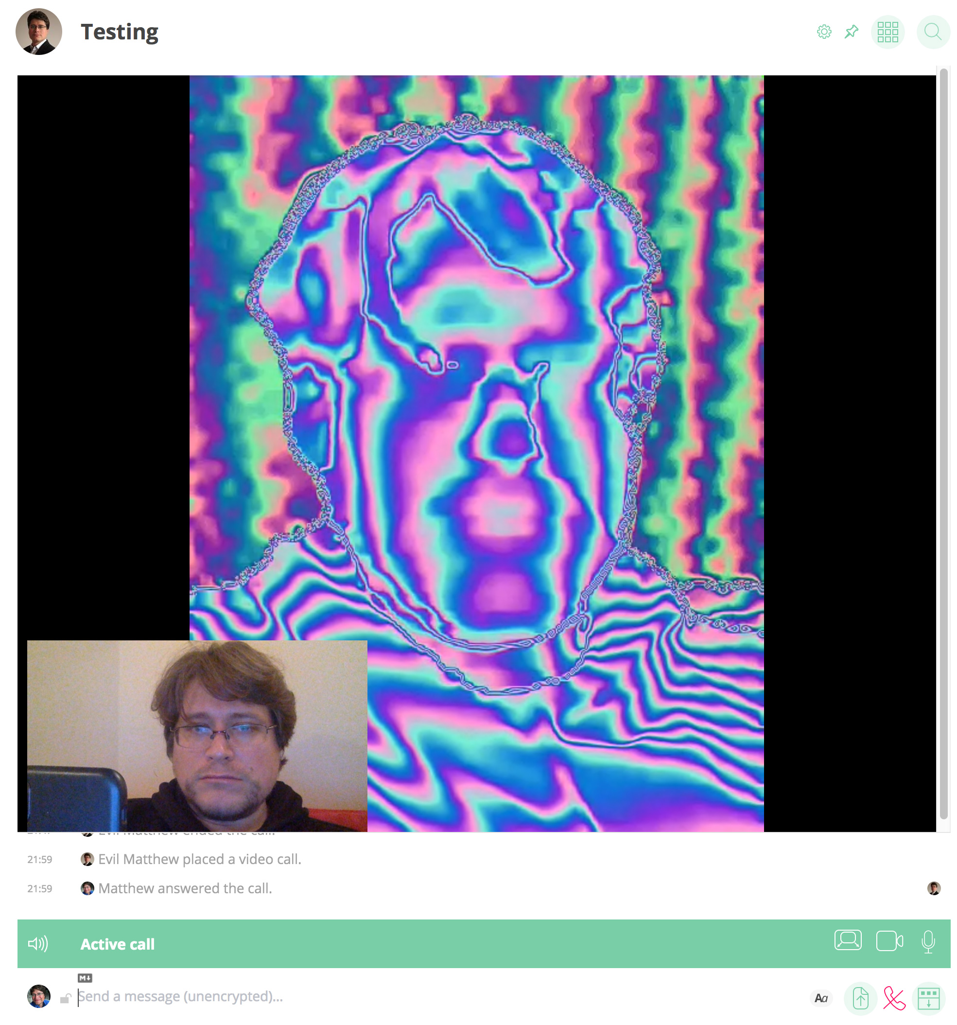 The bot also created rooms for each and every talk at FOSDEM (all 666 of them), as the space where the speaker and host could hang out in advance; watch the talk together, and then broadcast the Q&A session. At the end of the talk slot, the bot then transformed the talk room into a 'hallway' for the talk, and advertised it to the audience in the devroom, so folks could pose follow-on questions to the speaker as so often happens in real life at FOSDEM. The speaker's view of the talk rooms looked like this:
