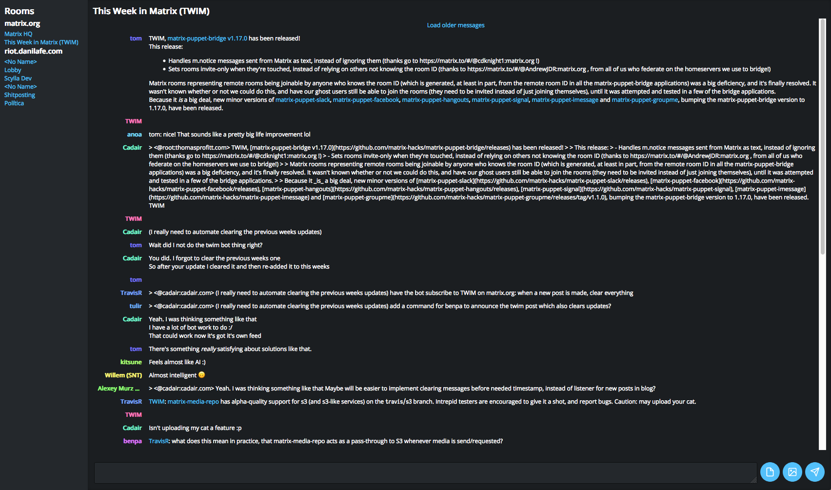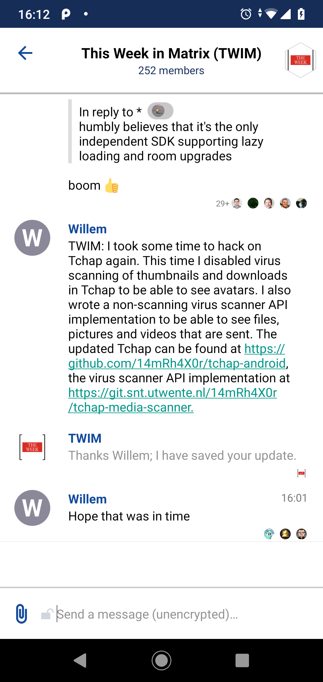 Many thanks go to fellow Synapse developers Erik and Rich for code review, as well as community contributors such as notafile and krombel for laying the foundations many months ago allowing this port to happen. Without them, this wouldn't have happened.
